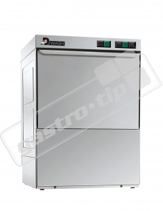 Jednoplášťová automatická myčka skla DWASH 40. Nová tichá, spolehlivá a snadno použitelná vybavená rotačními rameny, snadným elektromechanickým ovládáním, prolisovanou vanou s filtračním systémem udržujícím kvalitu vodu ve vaně, nízkou spotřebu vody, detergentu a umožňující snadné čistění a kompletní vypuštění myčky. Dvouplášťová dvířka komory s mikrospínačem snižující hlučnost a tepelné ztráty. Vybavena dávkovači mycího a oplachového prostředku.